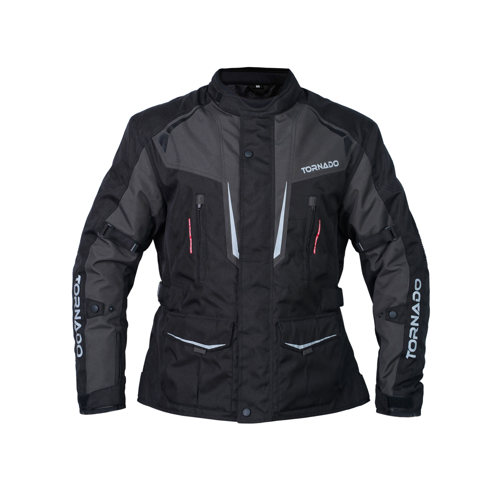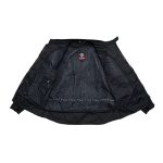 A motorbike textile jacket is a protective garment designed specifically for riders. It is made from durable fabric materials like nylon, polyester, or Cordura. It combines safety, comfort, and weather resistance, often featuring reinforced areas in high-impact zones (like the shoulders, elbows, and back) to protect against abrasions in case of a fall. These jackets are typically equipped with removable or adjustable armour, ventilation panels for breathability, and waterproof or water-resistant liners for protection in different weather conditions. Motorbike textile jackets offer versatility, often including reflective elements for better visibility and pockets for storage.