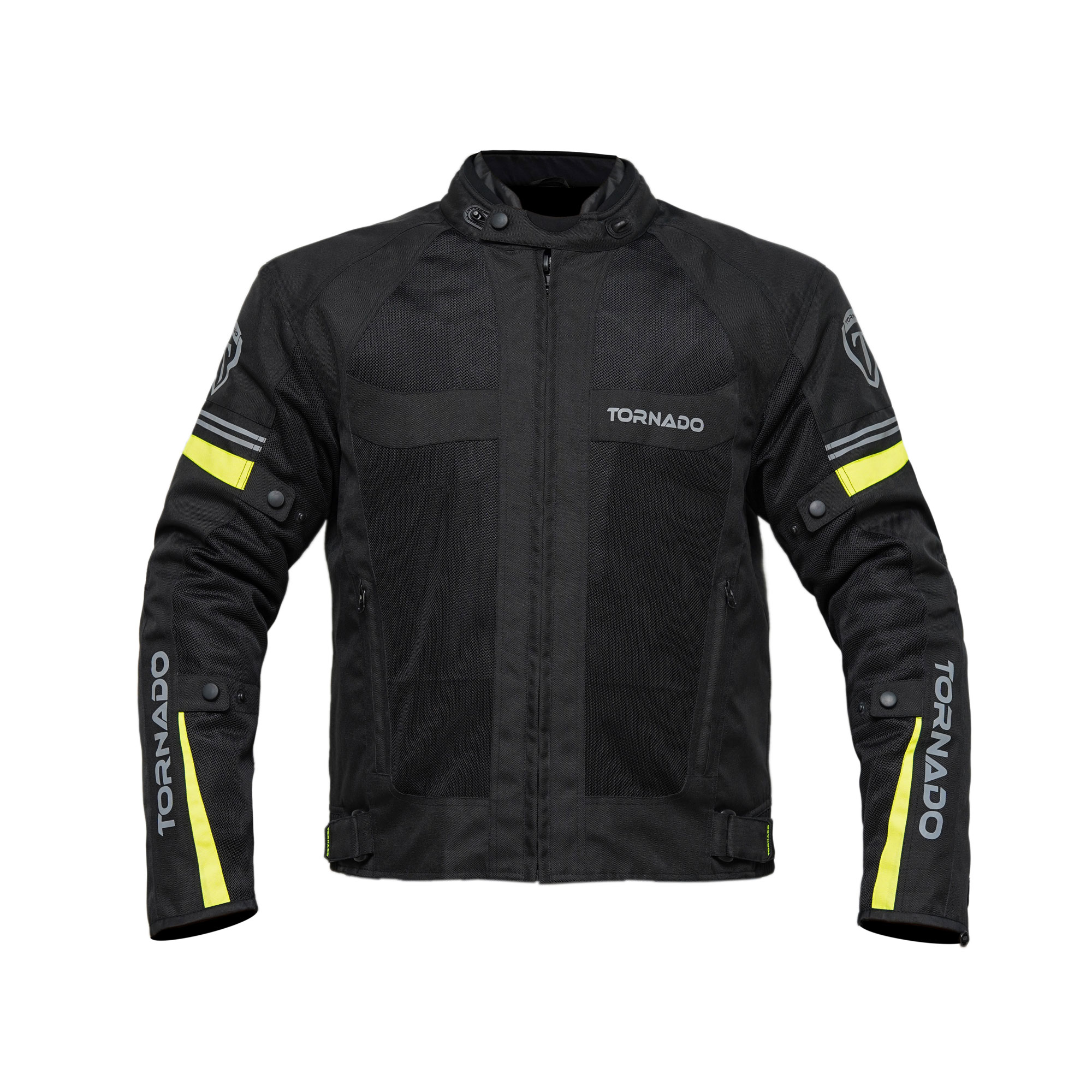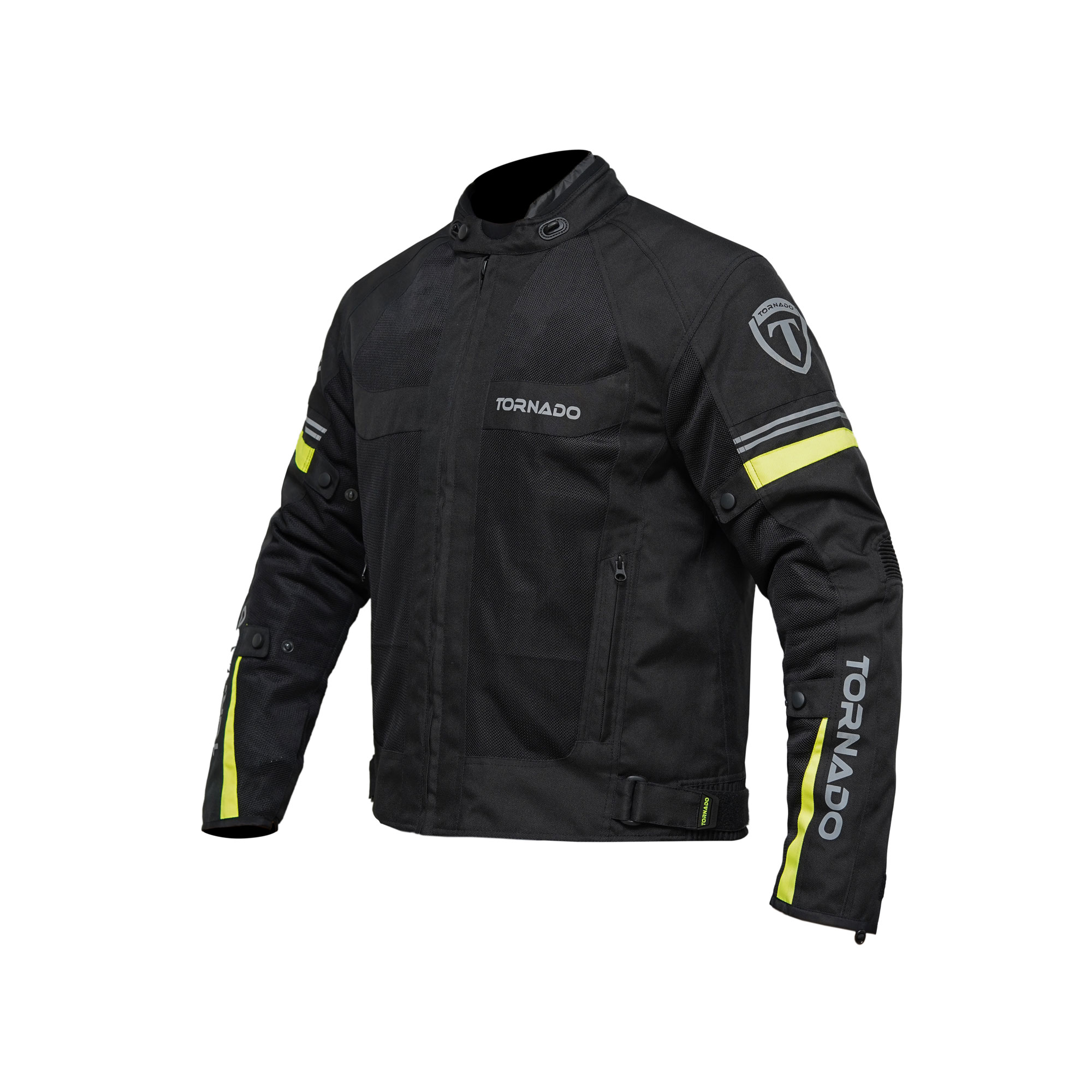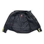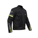 A motorbike textile jacket is a protective garment designed specifically for riders, made from durable fabric materials like nylon, polyester, or Cordura. It combines safety, comfort, and weather resistance, often featuring reinforced areas in high-impact zones (like the shoulders, elbows, and back) to protect against abrasions in case of a fall. These jackets are typically equipped with removable or adjustable armour, ventilation panels for breathability, and waterproof or water-resistant liners for protection in different weather conditions. Motorbike textile jackets offer versatility, often including reflective elements for better visibility and pockets for storage.